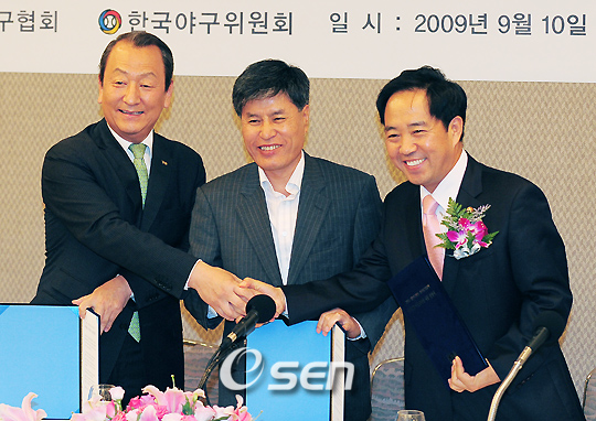 "최대는 아니지만 최고, 최상으로 만들겠다". 앞으로 야구국가대표 선수들은 최상의 조건에서 훈련에 임할 수 있을 것으로 보인다. 10일 오전 11시 한국프레스센터 19층 매화홀에서는 '고양 국가대표 야구훈련장 협정식'이 체결됐다. 이 자리에는 강현석 고양시장을 비롯해 유영구 한국야구위원회 총재, 강승규 대한야구협회장, 박용성 대한체육회장, 허구연 야구발전실행위원장 등이 참석했다. 강현석 고양시장은 "국가대표 야구장이 있기까지 도움을 주신 유영구 KBO총재와 강승규 대한야구협회장께 각별한 감사를 드린다. 또 허구연 야구발전실행위원장 없이는 불가능했다"고 밝혔다. 이어 "고양시는 그동안 야구 불모지였다"면서도 "최대는 아니지만 최고, 최상으로, 명품도시 고양시답게 최선을 다해 만들겠다. 그리고 잘 운영되고 관리될 수 있도록 하겠다"고 강조했다. 또 "우리 대표팀은 그동안 훈련장 없이도 올림픽 우승과 월드베이스볼클래식(WBC) 준우승을 차지했다"며 "국가대표 야구장이 만들어지면 더욱 좋은 성적을 계속 낼 수 있지 않겠는가"라며 기대감을 숨기지 않았다. 앞서 유영구 KBO 총재는 "협정식 날을 잘 잡은 것 같다. 프로야구가 어제(9일) 28년만에 관중신기록을 세웠다"면서 "야구가 이렇게 붐이 있을 줄 알고 선견지명을 발휘한 고양시장님을 봐도 고양시가 상당히 앞서가는 시다. 다른 시·군·부도 고양시를 본 받았으면 한다"라며 덕담을 건넸다. 강승규 대한협회장은 "조그만 출발이지만 여러 야구 숙제를 안고 있는 야구계에 획기적인 계기가 됐으면 한다"며 "국제대회에서 좋은 성적을 올리는 것도 중요하지만 국민들이 야구를 사랑하고 좋아하는 만큼 정부 및 각 관련단체들의 협력이 공동적으로 이뤄졌으면 한다"고 덧붙였다. 고양 국가대표 야구훈련장은 오는 10월에 착공, 내년 10월 중국 광저우아시안게임을 앞두고 개장한다는 목표다. 고양시는 지난 7월 KBO와 대한야구협회의 협의를 거쳐 일산 서구 대화동에 오는 12월 착공하는 야구장을 '고양 국가대표 야구훈련장(가칭, Goyang NBC : Goyang National Baseball Center)'으로 사용한다고 발표했다. 고양시가 진행 중인 '대화동 체육공원 조성공사'의 일환인 국가대표 야구훈련장은 총 6만220㎡(1만8200여평) 부지에 야구장 1면, 리틀 야구장 1면을 비롯해 선수대기실 등 편의시설, 파크골프장(18홀), 탈의실 및 선수대기실 등 편의시설이 들어서게 된다. 총 공사비는 78억원이며 2008년 설계용역을 시작으로 현재 조성공사가 진행 중인 것으로 알려졌다. 국가대표가 사용하지 않을 때는 야구 동호회나 각급 학교 야구부의 신청을 받아 일반에 개방될 예정으로 알려졌다. letmeout@osen.co.kr 고양 국가대표 야구훈련장 협정식이 10일 오후 한국프레스센터 19층 매화홀에서 열렸다. 이 자리에는 강현석 고양시장, 유영구 한국야구위원회 총재, 강승규 대한야구협회장, 박용성 대한체육회장이 참석했다. 유영구 총재, 강현석 시장, 강승규 회장이 사용 협정식을 갖은 후 포토타임을 갖고 있다./민경훈 기자 rumi@osen.co.kr