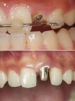 얼마전 대치동에 사는 A씨는 중학생이 된 아들이 자전거를 타다가 넘어져 앞니가 부러졌다는 소식을 듣고 깜짝 놀라 치과를 방문했다. 간단한 응급치료를 받고 한 달이 지난 뒤 아들이 치아색이 변했다는 이야기를 듣고 다시 치과를 방문하니 신경치료를 해야 한다는 이야기를 들었다. 활동량이 많아지는 계절이 다가오면서 예기치 않은 사고로 앞니가 부러지는 사고를 당하는 사람이 많아지고 있다. 앞니가 부러진 경우 적절한 치료법에 대해 뉴연세치과 보라매클리닉 김선욱 원장은 “앞니가 파절된 경우 파절된 양, 파절라인의 위치 등에 따라 다양한 치료법이 있다”고 말한다. 파절된 양이 단순히 앞니 끝 절단면에 국한된 경우는 간단한 레진수복물로 모양만 만들어 주거나 다듬어 주면 된다. 하지만 이 경우에도 위와 같이 향후 치아가 죽는 치수괴사로 인해 치아색이 변해 결국 치아신경치료를 해야 할 가능성이 있다. 치수 괴사 여부는 치아파절 당시에 바로 알 수는 없고 1~2달 지난 후 치아색이 변하거나 치과에서 간단한 치아 생활력 검사를 통해 알 수 있다. 치아신경치료 후에는 실활치 미백으로 원래 색을 회복해 주거나 파절량이 많다면 세라믹 보철물로 치아를 수복해 주면 된다. 파절된 양이 치아 뿌리까지 가지는 않았지만 치수의 노출을 동반한다면 파절 당시 바로 응급으로 신경치료를 해주어야 한다. 그렇지 않다면 극심한 통증을 동반하게 된다. 치수가 노출될 정도의 파절이라면 신경치료 후 세라믹 보철물울 해 주어야 할 경우가 많다. 파절된 양이 너무 많아 세라믹 보철물을 씌울 치아가 남아 있지 않다면 치아의 양을 보강해주는 포스트치료를 병행해야한다. 포스트치료란 신경치료가 된 치아의 뿌리에 기둥을 심어 세라믹 보철물이 들어갈 부분의 치아를 보강해주는 치료방법이다. 만약 파절된 양이 뿌리 부분까지 포함한다면 치료방법은 보다 복잡해진다. 일단 뿌리의 하방부위까지 파절라인이 내려갔다면 치아를 살려서 쓰기는 힘들다. 이때에는 치아를 발치 후 임플란트 혹은 브리지 보철물로 치료를 받아야 한다. 하지만 파절라인이 뿌리까지는 내려갔으나 상방부위에 있다면 희망을 가져볼 수 있다. 이 경우에도 나중에 보철물이 들어가기 위해 치아를 보강해 주는 포스트 치료를 시행해야하는데 그러기 위해서는 파절라인을 잇몸 위까지 올려주어야 한다. 그러기 위한 방법으로는 잇몸이나 잇몸뼈자체를 내려주거나 아니면 치아를 끌어올려 파절라인이 잇몸위로 올라오게 해주는 치아강제정출치료를 하면 된다. 잇몸이나 잇몸뼈를 내리는 술식은 간단하지만 잇몸자체가 내려가기 때문에 주변 잇몸과 조화를 이루기 힘들다는 단점이 있다. 반면에 교정력을 이용해 치아를 끌어올려주는 치아강제정출치료는 자연스런 잇몸라인을 가질 수 있지만 시간이 많이 걸리는 단점이 있다. 또한 위와 같은 방법들은 치아가 드러난 부분과 뼈속에 있는 부분의 비율, 즉 치관대 치근 비율을 고려해서 치료여부를 결정해야 한다. 이와 같은 모든 치료를 잘 받았다 하더라도 뿌리의 보이지 않는 부위에 금이 갔다면 치료 후 염증을 유발할 수 있다. 이 경우에도 안타깝게도 치아를 발치해야 한다. “예기치 않는 사고로 앞니가 부러진 경우 당황하지 말고 가까운 치과를 방문하여 적절한 응급치료를 받은 후 향 후 예후에 따라 치료방법 결정하는 것이 현명하다”고 동작구 신대방동 뉴연세치과 김선욱 원장은 조언하고 있다. /생활경제팀 osenlife@osen.co.kr 치아강제정출치료(위)와 포스트 치료 모습.