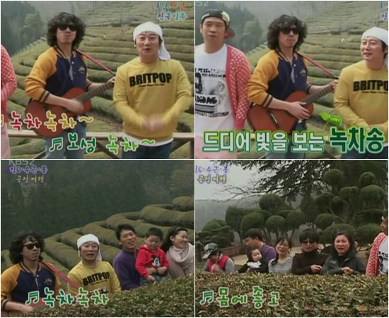광활한 녹차밭에 도착하자 김C는 기타를 들고 반주를 시작했고 MC몽과 이수근은 노래를 부르며 코믹댄스를 선보여 현장에 있던 관광객들의 열띤 호응을 받았다. 분위기를 탄 세 멤버는 일반인 관광객들까지 모아 녹차송을 부르며 녹차 홍보에 열을 올렸다. 관광객들도 하나가 되어 부른 녹차송은 쉬운 가사에 단순한 멜로디가 귀에 착착 감기며 녹차밭에 울려 퍼졌다.