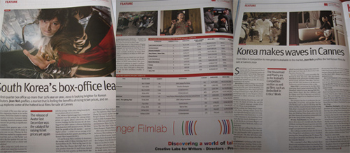 특히 올해 제63회 칸 국제영화제에서 두 편의 한국영화가 경쟁부문에 진출해 그 어느 때보다 두드러진 활약을 보이며 전세계 영화인들의 주목을 한 몸에 받고 있다. 이에 영국 스크린 인터내셔널이 15일자 데일리에서 한국영화특집을 3페이지에 걸쳐 집중 조명해 눈길을 끌었다.