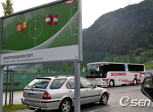 <사진> 연습 구장 입구에 '유로 2008 챔피어 스페인의 훈련장'이라는 표지판이 서 있는 모습. / 노이슈티프트(오스트리아)=김영민 기자 ajyoung@osen.co.kr