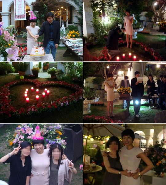고 장진영의 남편 김영균 씨가 작년 고인의 생일에 파티와 함께 프러포즈하는 모습을 담은 사진을 공개했다.