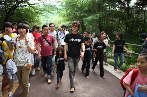 영화 '맨발의 꿈'(6월 24일 개봉)의 주연 배우 박희순이 제 16회 '2010 유니세프 사랑의 맨발걷기대회'에 참가해 공식행사를 위해 내한한 동티모르 맨발의 아이들과 함께 6.5km 코스를 맨발로 완주했다.