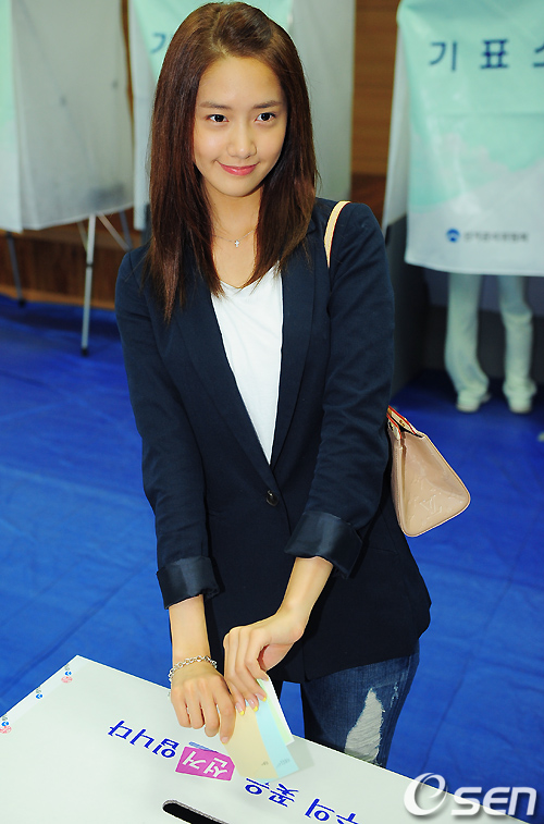 인기 여성그룹 소녀시대의 윤아가 2일 오후 서울 대림 3동 대림정보도서관에 설치된 투표소에서 제5회 동시 지방선거에 투표용지를 들고 소중한 한표를 던졌다.