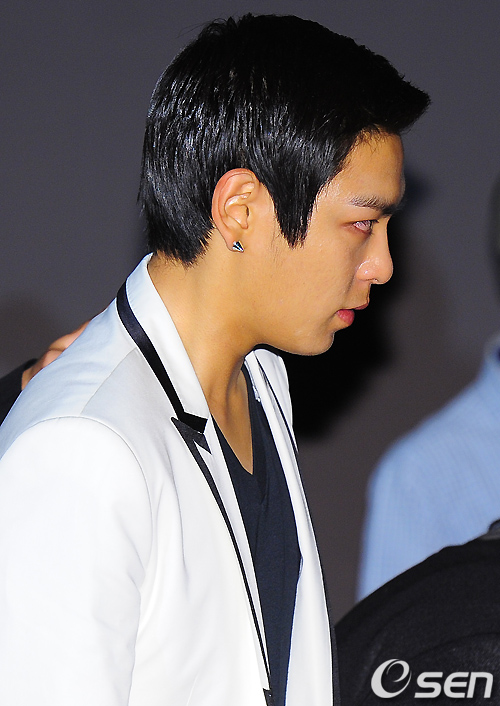 시사회를 마치고 영화를 직접 관람한 최승현(T.O.P)이 눈물을 많이 흘려 충혈된 눈으로 관람석에서 걸어나오고 있다./rumi@osen.co.kr