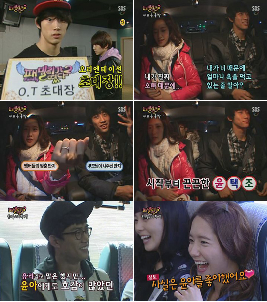첫회 ‘패떴 2’ 멤버들이 오리엔테이션을 떠나는 과정에서 택연과 윤아는 첫 만남을 가졌다. 당시 두 사람은 어색함 속에서 스캔들에 대해 ‘억울하다’는 입장을 토로했고, 당시 네티즌들 사이에 증거물로 제시됐던 반지에 대해 해명하는 시간을 갖기도 했다. 그 후 윤아와 택연은 자연스럽게 그냥 친한 사이 정도로만 비춰졌다.