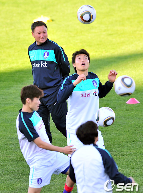 [OSEN/머니투데이=러스텐버그,손용호 기자] 허정무 감독이 이끄는 태극전사들이 7일(한국시간) 오후 러스텐버그의 올림피아파크 경기장에서 적응훈련을 가졌다.