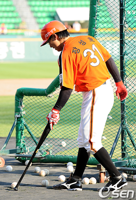 경기전 장성호가 배팅연습을 하고 있다. /jpnews@osen.co.kr