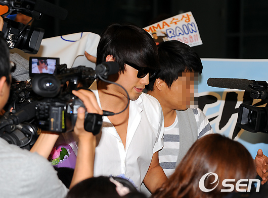 한국인 최초로 '2010 MVT 무비 어워즈'에서 '최고의 액션스타(Biggest Badass Star)'상을 거머쥔 비가 8일 오후 인천국제공항을 통해서 귀국했다.