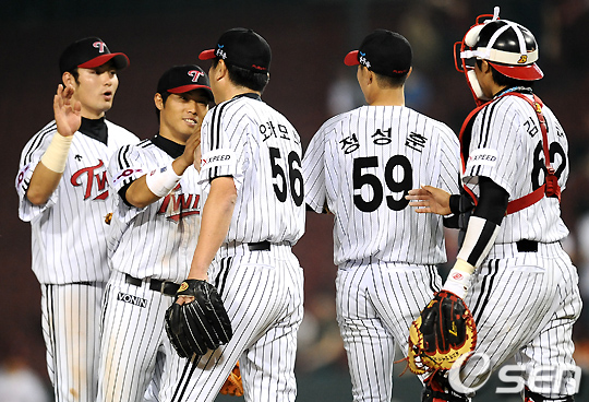 경기후 승리한 LG 선수들이 하이파이브를 하며 기뻐하고 있다. /jpnews@osen.co.kr