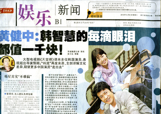 배우 한지혜가 중국 전역에 발행되는 <양성완보>의 1면을 장식했다.