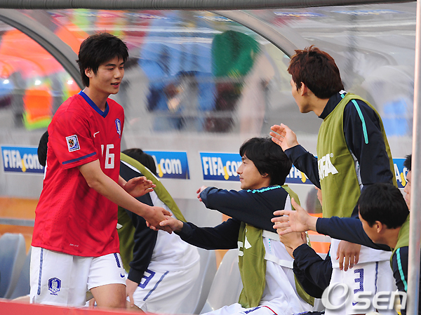 후반 기성용이 교체되면서 벤치에서 동료들의 환영을 받고 있다./ spjj@osen.co.kr