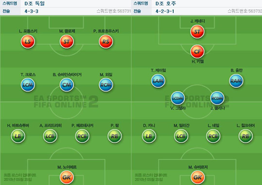 독일(4-3-3)= 마누엘 노이어; 홀거 바드슈투버, 아르네 프리드리히, 페어 메르테자커, 필립 람; 토니 크루스, 바슈티안 슈바인슈타이거, 메수트 외질; 루카스 포돌스키, 미로슬라프 클로제, 피오트르 트로호프스키