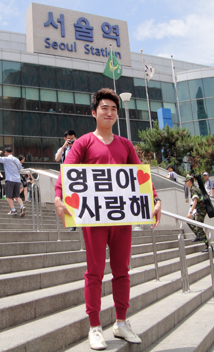 인기 개그맨 장동민이 서울역 광장 한복판에서 빨간 내복 차림으로 “영림아, 사랑해”를 외쳐 네티즌 시선을 끌고 있다.