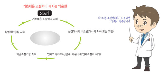 따뜻한 음식을 먹어서 몸을 따뜻하게 하고 반신욕이나 목욕을 통해 신진대사를 원활하게 해야 코의 건강에 좋다. 손발이 따뜻한 것은 혈액순환이 원활한 것으로 기초체온 조절력이 잘 유지되고 있다는 증거이며 특히, 걷기, 자전거타기, 등산 같은 운동은 하체를 단련하여 차가운 기운을 올라가게 하고 뜨거운 기운을 내리는데 도움이 되는 운동이다.