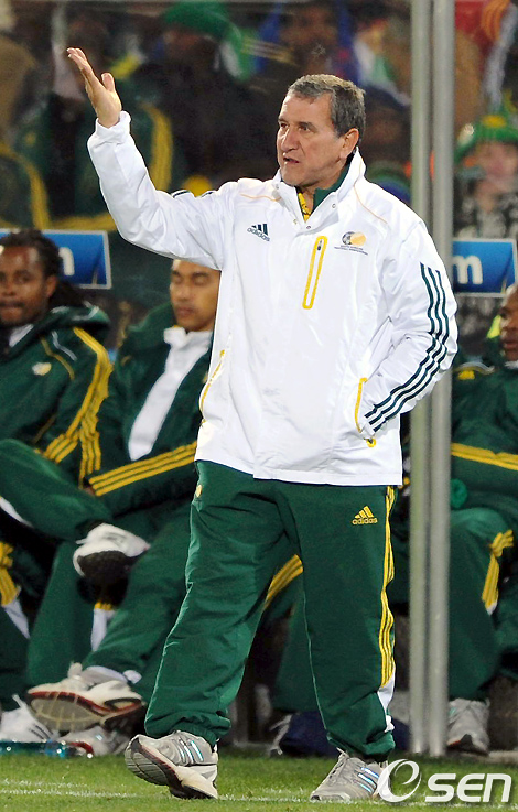 후반전 남아공 쿤 골키퍼가 퇴장 당하자 파레이라 감독이 아쉬워 하고 있다 / song@osen.co.kr