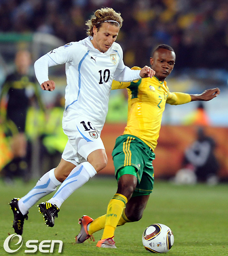 [OSEN/머니투데이=프리토리아(남아공), 송석인 객원기자]우루과이(FIFA랭킹 18위)가 17일(이하 한국시간) 새벽 프리토리아 로프터스 퍼스펠트 스타디움에서 열린 2010 남아공월드컵 A조 2차전 남아공(90위)과 경기에서 3-0으로 승리했다.