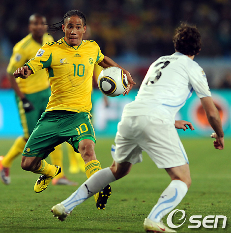 후반전 남아공 피에나르와 우루과이 고딘과 볼을 다투고 있다. / song@osen.co.kr