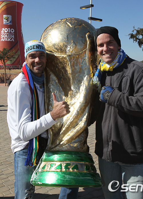 아르헨티나 응원단이 모형 우승 트로피를 들고 응원을 하고 있다. /spjj@osen.co.kr