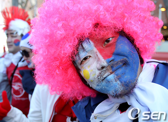 경기전 한국응원단이 페이스 페인팅을 하고 열띤 응원을 하고 있다. /spjj@osen.co.kr