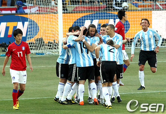 [OSEN/머니투데이=요하네스버그(남아공), 손용호 기자] 그리스와 첫 판서 시원한 승리를 거둔 태극전사들이 17일(한국시간) 저녁 2010 남아공 월드컵 16강 진출의 중요한 고비에서 강적 아르헨티나와 B조 2차전을 벌였다.