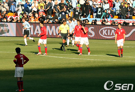 아르헨티나의 네 번째 골이 터지자 한국선수들이 고개를 숙이고 있다. /spjj@osen.co.kr
