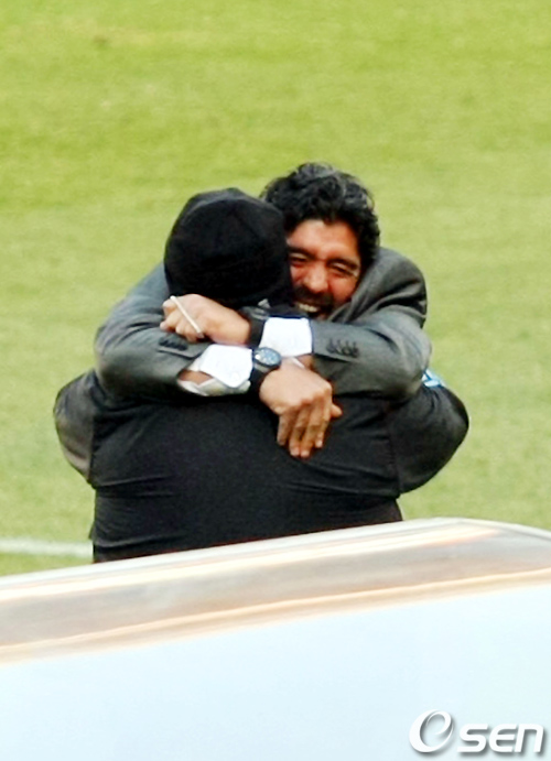 아르헨티나의 세 번째 골이 터지자 마라도나 감독이 기뻐하고 있다. /spjj@osen.co.kr