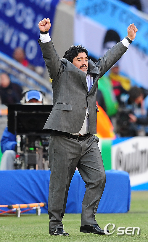 경기에 승리한 마라도나 감독이 환호하고 있다. /spjj@osen.co.kr
