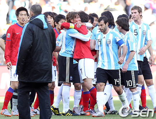 [OSEN/머니투데이=요하네스버그(남아공), 손용호 기자] 허정무 감독이 이끄는 축구 대표팀이 17일(이하 한국시간) 밤 요하네스버그 사커시티 스타디움에서 열린 아르헨티나와 2010 남아공월드컵 B조 2차전에서 곤잘로 이과인에 해트트릭을 허용하면서 1-4로 분패했다.