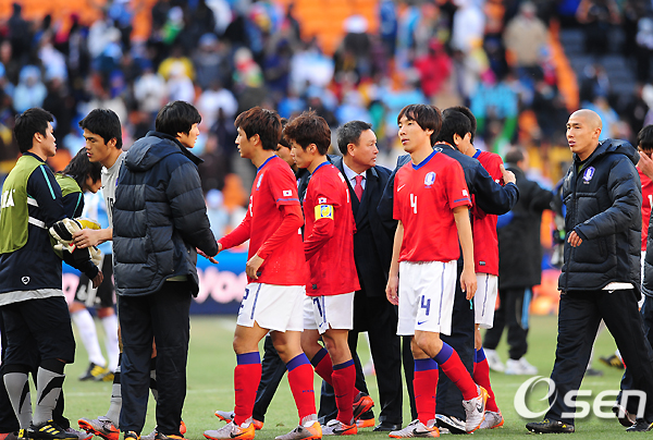 [OSEN/머니투데이=요하네스버그(남아공), 손용호 기자] 허정무 감독이 이끄는 축구 대표팀이 17일(이하 한국시간) 밤 요하네스버그 사커시티 스타디움에서 열린 아르헨티나와 2010 남아공월드컵 B조 2차전에서 곤잘로 이과인에 해트트릭을 허용하면서 1-4로 분패했다.