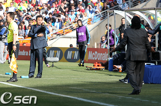 24년 만에 2010남아공월드컵에서 깔끔한 정장을 입고 한국과 아르헨티나 대표팀 감독을 맡아 벤치에서 다시 만난 허정무(55) 감독과 디에고 마라도나(50)의 재대결에서 마라도나가 두 팔을 활짝 펼치며 4차례나 골 세리머니를 보여주며 환하게 웃었다.