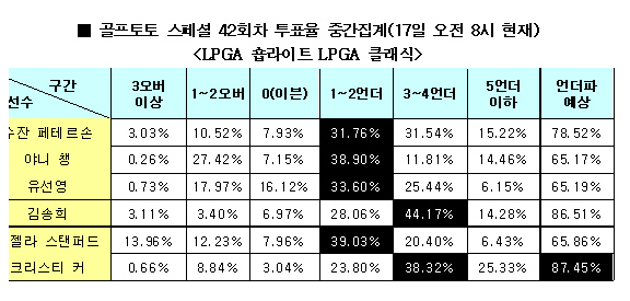 LPGA ‘숍라이트 LPGA 클래식’ 골프토토 스페셜 42회차 투표율 중간집계 결과