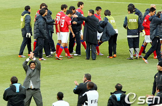 [OSEN/머니투데이=요하네스버그(남아공), 손용호 기자] 허정무 감독이 이끄는 축구 대표팀이 17일(이하 한국시간) 밤 요하네스버그 사커시티 스타디움에서 열린 아르헨티나와 2010 남아공월드컵 B조 2차전에서 곤잘로 이과인에 해트트릭을 허용하면서 1-4로 분패했다.