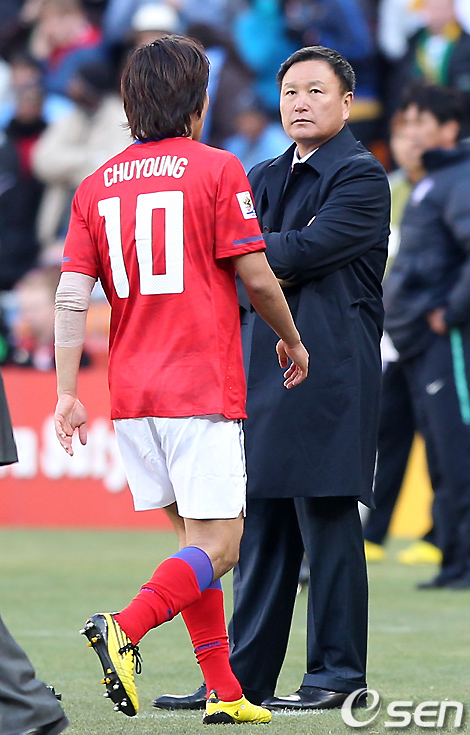 [OSEN/머니투데이=요하네스버그(남아공), 손용호 기자] 허정무 감독이 이끄는 축구 대표팀이 17일(이하 한국시간) 밤 요하네스버그 사커시티 스타디움에서 열린 아르헨티나와 2010 남아공월드컵 B조 2차전에서 곤잘로 이과인에 해트트릭을 허용하면서 1-4로 분패했다.