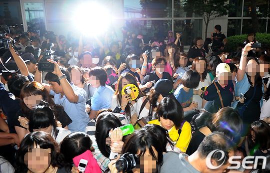 재범이 공항을 나서자 팬들이 밖으로 몰려들며 아수라장이 되고 있다. /jpnews@osen.co.kr