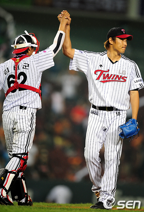 LG가 18일 오후 서울 잠실구장에서 열린 2010 CJ 마구마구 프로야구 롯데 자이언츠와의 경기에서 선발 봉중근의 호투와 홈런 2방 포함 장단 14안타를 몰아쳐 7-4로 승리했다.