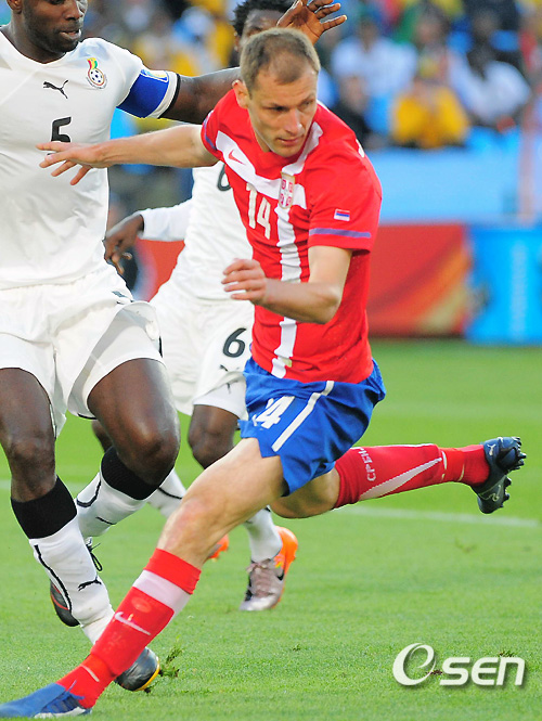 이날 세르비아는 초반 가나전에서 퇴장당한 중앙 수비수 알렉산다르 루코비치(우디네세 칼초)의 공백을 메우기 위해 수비 위주의 전술을 펼쳤다.