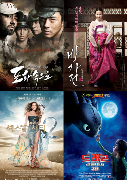 19일 오전 영화진흥위원회 영화 예매율 실시간 집계 따르면, 영화 ‘포화속으로’가 40.72%로 예매율 1위를 달리고 있다. ‘방자전’은 15.6%, ‘드래곤 길들이기’ 11.26%를 기록하고 있으며 이후 'A-특공대’ ‘섹스앤더시티2’ ‘페르시아의 왕자: 시간의 모래’ 등이 한자리수 예매율을 기록하고 있다. 어느 작품이 이번 주말 극장가의 승기를 잡을지 귀추가 주목된다.