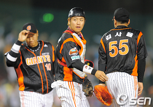 경기후 롯데 강민호와 동료선수들이 승리를 기뻐하고 있다. /jpnews@osen.co.kr