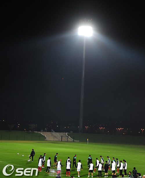 [OSEN/머니투데이=더반,손용호 기자] 2010 남아공월드컵 예선 나이지리아와 마지막 경기 벌어질 더반에 입성한 태극전사들이 21일(한국시간) 새벽 프린세스 마고고 스타디움에서 야간 적응훈련을 가졌다.