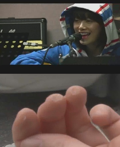 구혜선은 "매일 집에서 방콕으로 기타 연습을 했다. 물집이 잡힌 건 연주를 잘 못하기 때문"이라며 "못하는데 자꾸 하니까 손이 더 망가진 것"이라고 쑥스러운 듯 말했다.