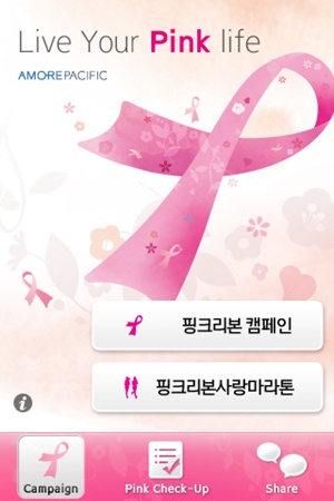 또한 스마트폰 배경화면을 꾸밀 수 있는 다양한 핑크리본캐릭터 월페이퍼와 SNS를 통한 지인들과의 어플리케이션 공유 서비스도 제공함으로써, 사용자들이 재미있게 핑크리본의 취지를 나눌 수 있게 했다. 이밖에 매년 5개 도시에서 ‘유방건강기금’ 마련을 위해 개최되는 핑크리본사랑마라톤 참여신청과 저소득층 유방암 여성 수술비 지원 등을 위한 한국유방건강재단 기부안내를 통해 나눔의 기회도 제공한다.
