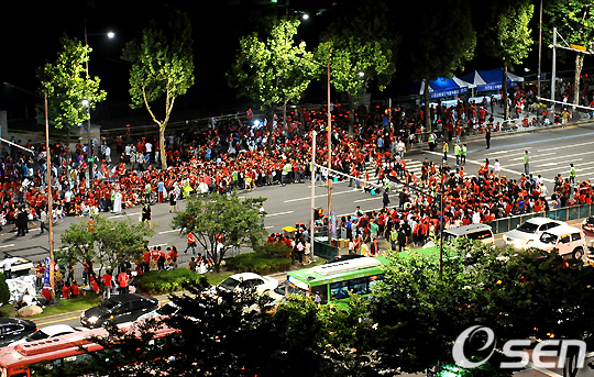 2010 남아공 월드컵 B조 조별리그 3차전 한국과 나이지리아 경기를 앞둔 22일 밤 서울 삼성동 코엑스 앞 영동대로에 붉은악마들이 길거리 응원을 위해 모이고 있다.