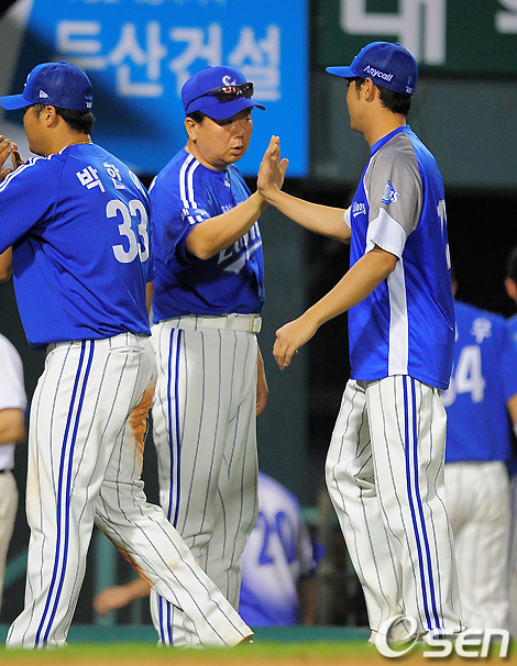 삼성은 이날 승리로 시즌 전적 35승 1무 34패(3위, 23일 현재)를 기록하며 하루 만에 다시 승률을 5할로 맞췄다. 반면 두산은 시즌 전적 38승 1무 29패(2위)로 선두 SK와의 극간을 좁히지 못했다.