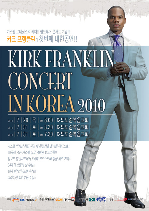 가스펠 역사상 가장 영향력 있는 아티스트로 꼽히는 커크프랭클린이 한국의 정상급 CCM 뮤지션과 만나 한국에서 첫 내한공연을 한다. 오는 7월 29일과 31일 여의도 순복음교회에서 ‘커크 프랭클린 콘서트 인 아시아2010’ 타이틀로 콘서트를 개최한다.