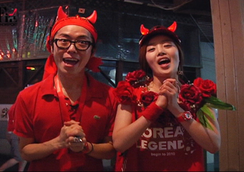 한선화가 직접 리폼한 빨간 티셔츠로 월드컵 응원녀 변신에 성공했다.