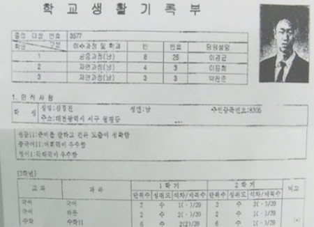 어리숙한 외모와 느릿한 말투로 큰 웃음을 주고 있는 개그맨 김경진이 고등학교 때 전교 1등을 했던 성적표를 공개해 화제를 모았다.