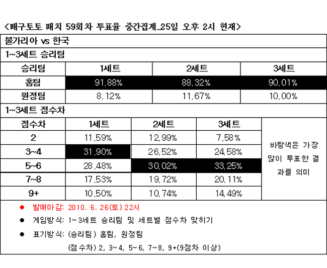 2010월드리그 국제남자배구대회 대상 배구토토 매치 59회차 중간집계 결과