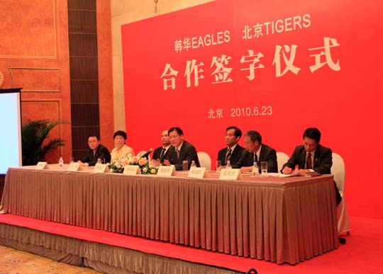 한화 이글스는 6월23일 중국 북경 쿤룬 호텔에서 한화이글스와 북경타이거즈의 자매결연을 맺는 합작행사를 실시했다.