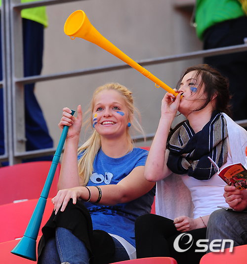경기전 우루과이 여성 응원단이 부부젤라를 불며 응원을 펼치고 있다. /spjj@osen.co.kr
